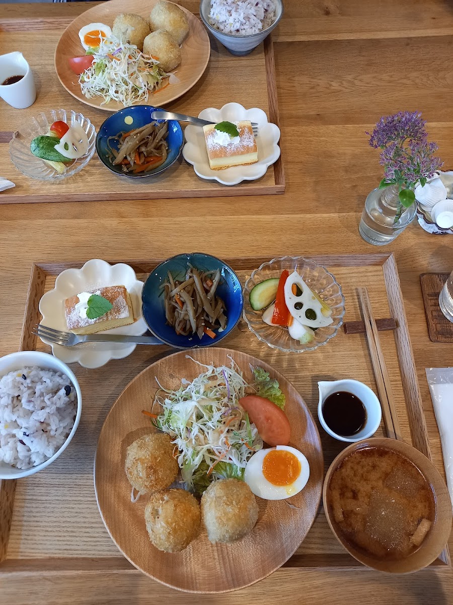 At irodori, you'll find a menu brimming with nutritious and delicious options that highlight the natural flavors of seasonal ingredients. The café specializes in Japanese cuisine, with standout dishes that include the popular ごぼうハンバーグ (burdock hamburger) and ミンチカツ (minced meat cutlet), which are not only hearty but are also crafted with care. The daily lunch specials, such as 日替わりランチ (daily lunch), are a true delight; the reviews highlight how the rich flavors and the balance of nutrients make each meal a culinary joy. The イロドリ野菜カレー is a must-try, celebrated for its depth of flavor and the natural sweetness of the vegetables. It’s served with a refreshing salad, a drink, and a dessert for just 1100 yen, making it an affordable feast.